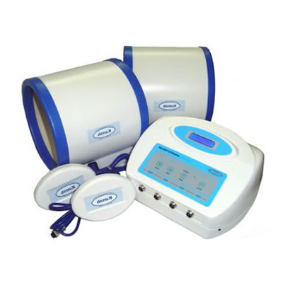Equipo generador de campos magnéticos, “magnetoterapia”. Con la robustez que lo caracteriza, responde a las exigencias que el profesional necesita. Cuenta con dos tipos de emisión, continua que varia de 10 a 100 gauss y pulsante que varia de 20 a 200 gauss. Equipado con 4 salidas, se entrega con 2 aplicadores planos y un aplicador envolvente, teniendo la posibilidad de anexar un aplicador extra al equipo. Posee un timer acústico de 30 minutos, variación de frecuencia de 3, 6, 12, 25 y 50 Hz y detector de emisión